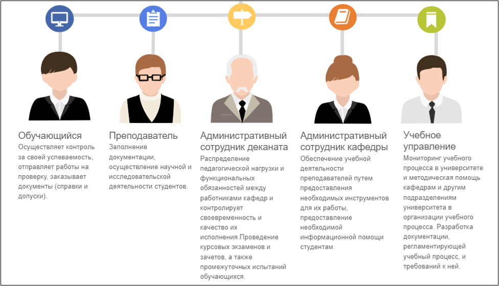 - Загрузка портфолио: обучающийся и преподаватель загружают работы только в свое портфолио, административный работник деканата — только в портфолио своих обучающихся, а административный работник кафедры — только в портфолио своих преподавателей.