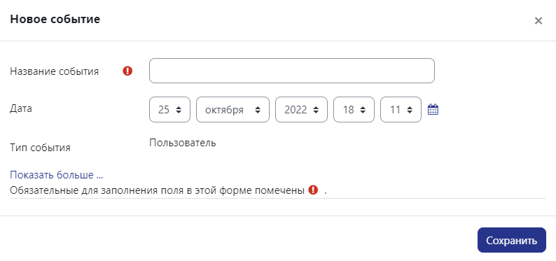 Для создания события, нажмите на выбранный день, заполните открывшуюся форму и нажмите «Сохранить».