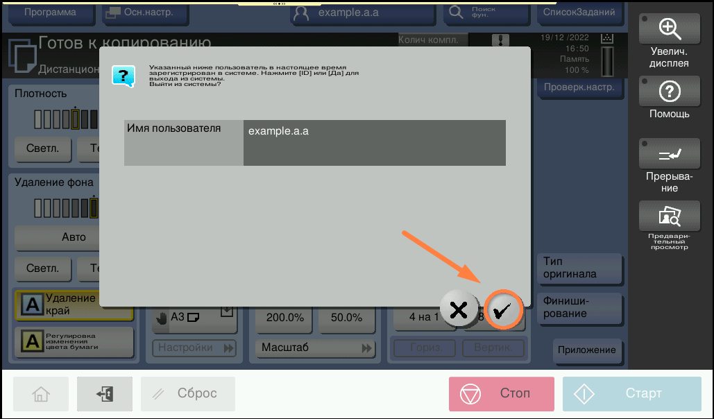 По окончании копирования чек о предоставлении услуги с указанием суммы будет направлен на адрес корпоративной электронной почты.