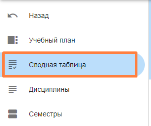 Для перехода к сводной таблице нажмите «Сводная таблица» в левом боковом меню .
