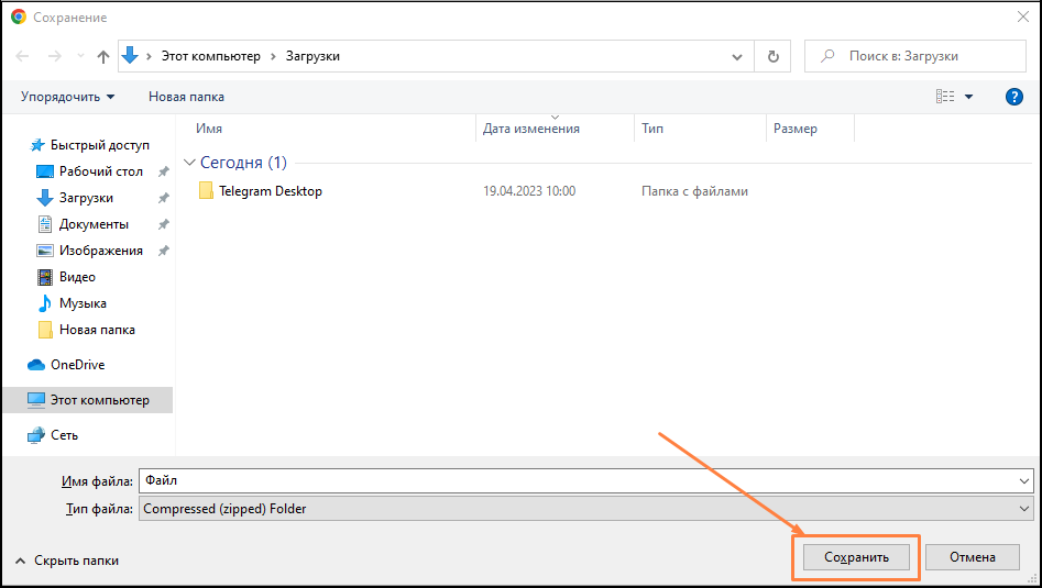 Далее откроется окно сохранения файла. Выберите место для сохранения, переименуйте файл при необходимости и нажмите "Сохранить".