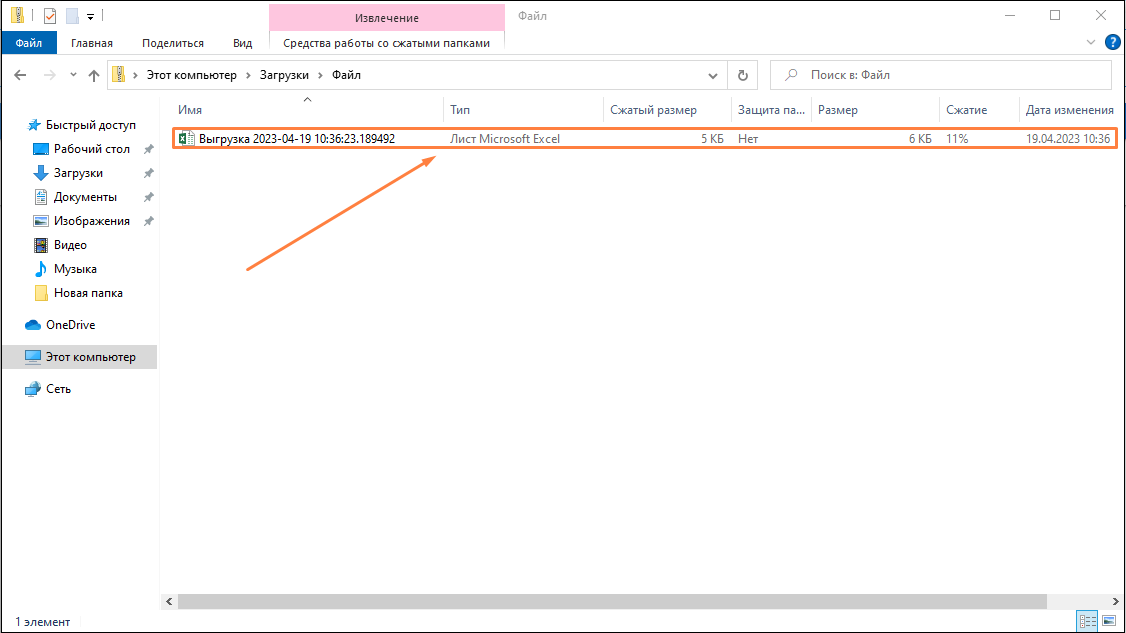 После выполнения действий в папке появится файл Excel с форматом имени "Выгрузка год-месяц-число_цифровой код.xslx"