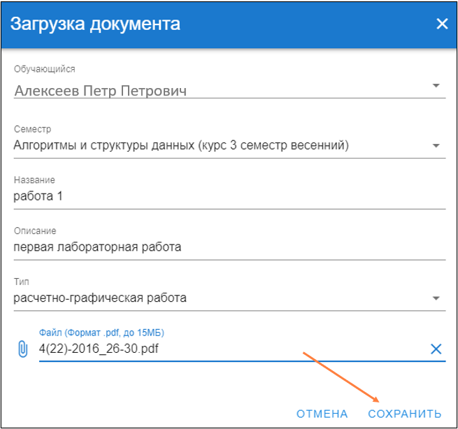 После сохранения работа отобразится на странице.