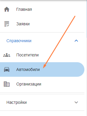 Для просмотра списка автомобилей, внесенных в систему, нажмите "Автомобили" в левом боковом меню.