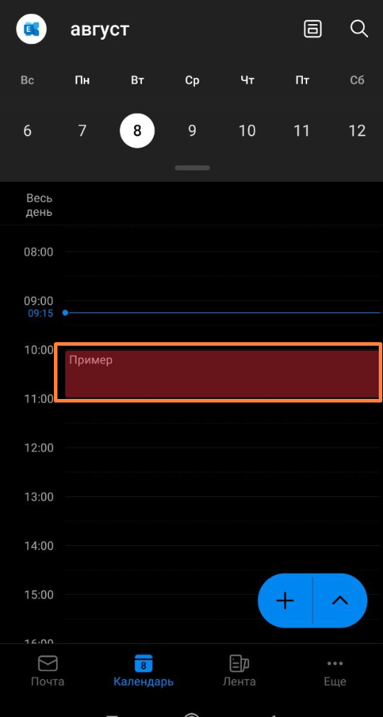 Для просмотра календаря в мобильном приложении Outlook в нижней панели выберите «Календарь».