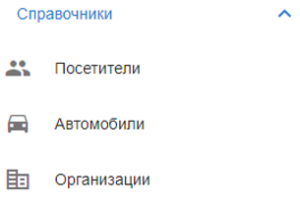 Раздел содержит информацию о посетителях, автомобилях и организациях, занесенных в систему. Для перехода кликните на интересующую страницу в левом боковом меню.