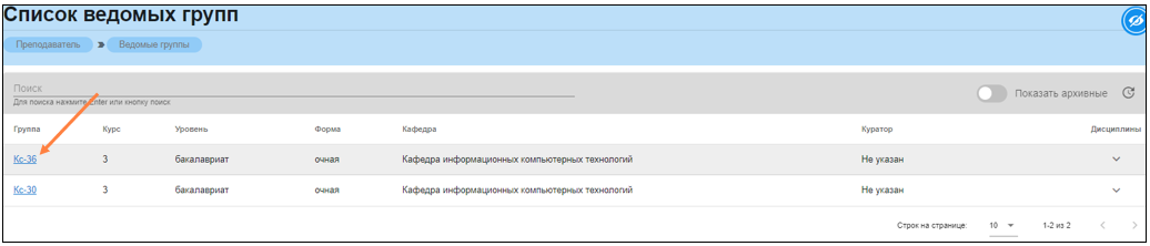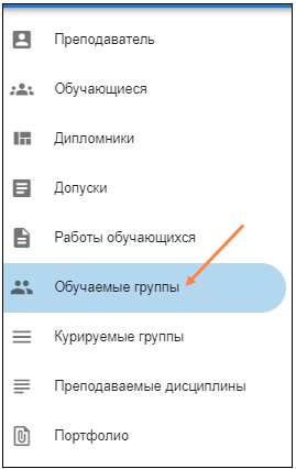 Для проставления оценок нажмите "Обучаемые группы" в левом боковом меню.