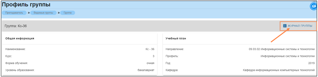 В открывшемся профиле группы щёлкните "Журнал группы".
