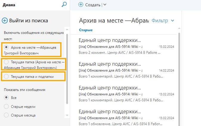 Страница: Поиск сообщений в архиве