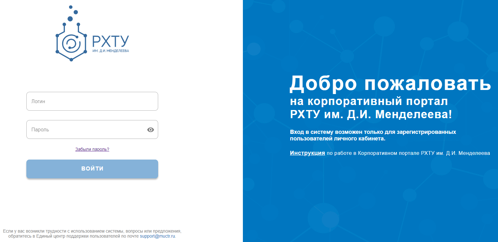 Далее нажмите на кнопку «Сохранить». После этого откроется страница входа в Корпоративный портал, на которой необходимо ввести логин и новый пароль.