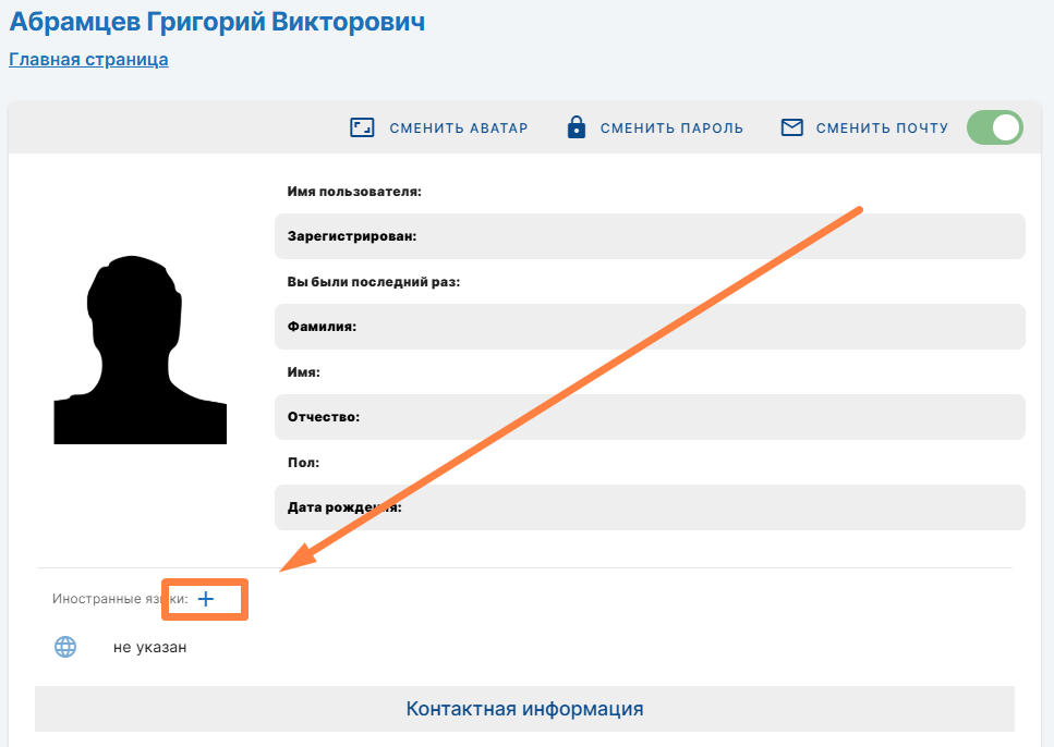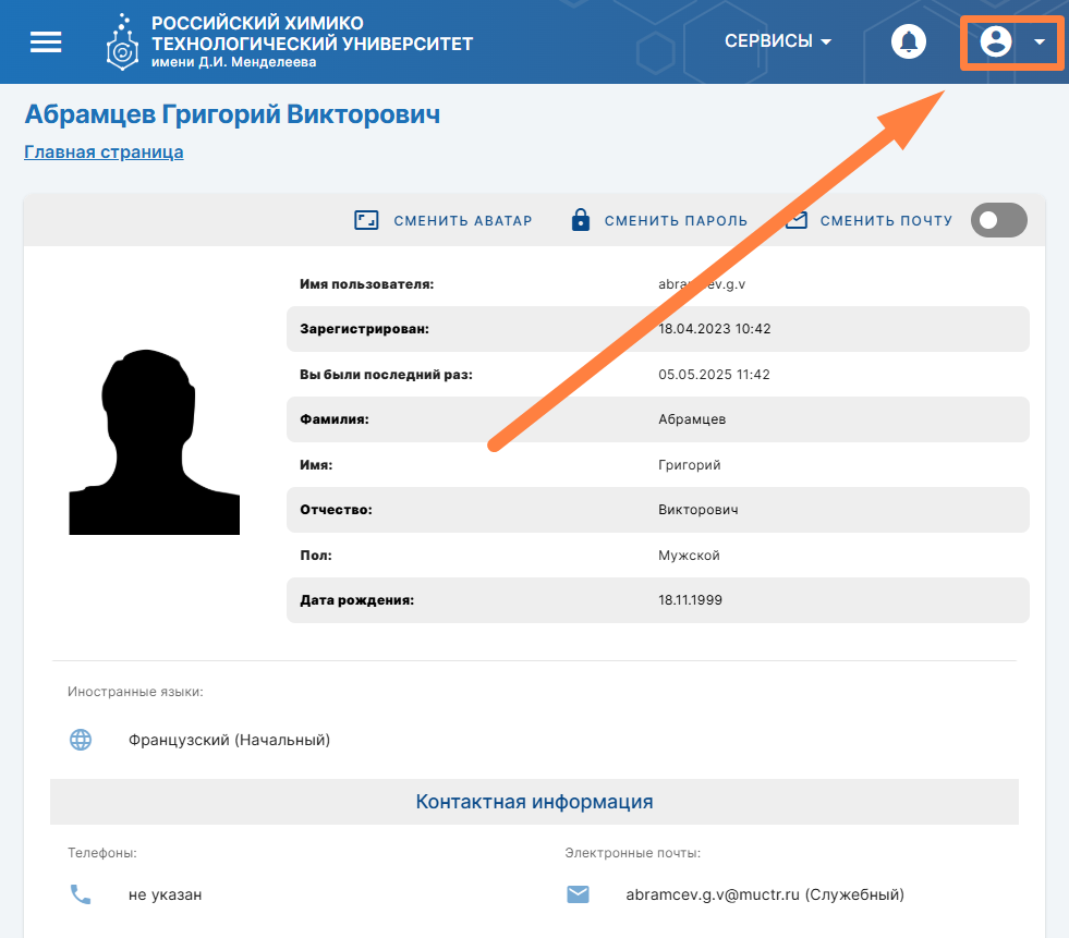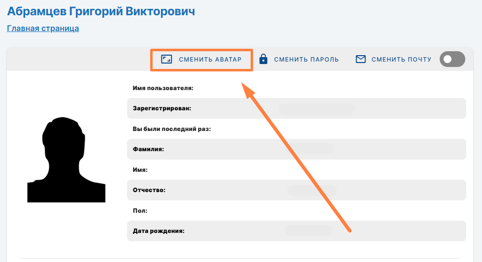 Чтобы сменить аватар, нажмите на кнопку «Сменить аватар».