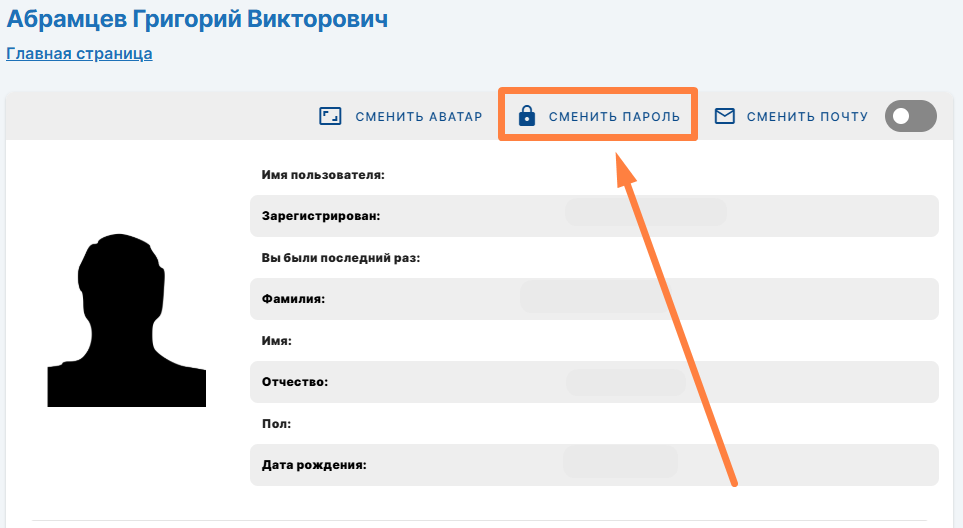Для изменения пароля необходимо нажать на кнопку «Сменить пароль»