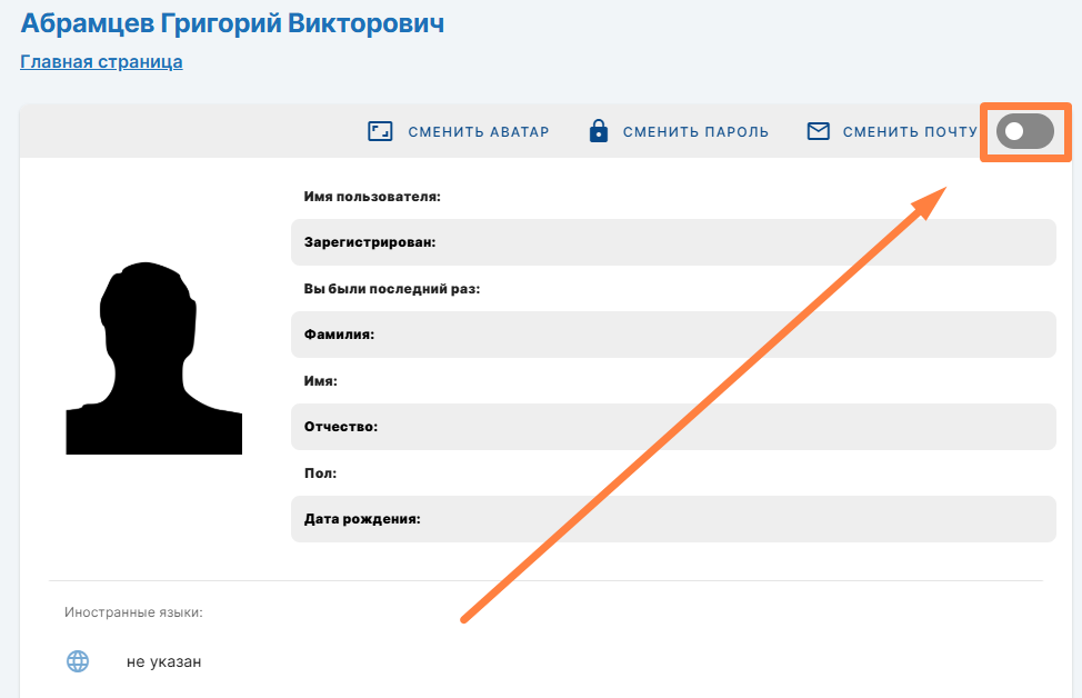 В разделе «Профиль» перейдите в «Режим редактирования» при помощи переключателя