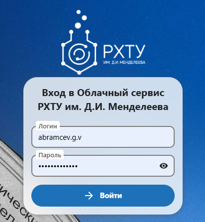 Для входа в Web-приложение перейдите на сайт «https://cloud.muctr.ru/»