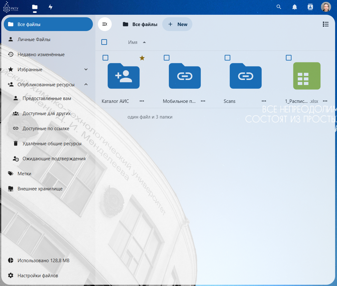 После авторизации откроется пространство общего файлового сервера с вашей личной директорией и сохраненными в ней данными.