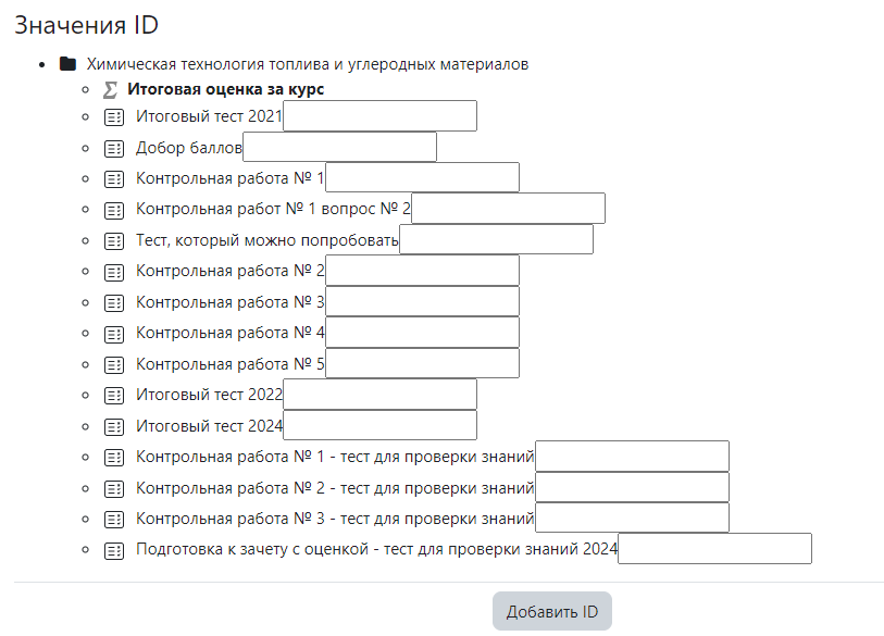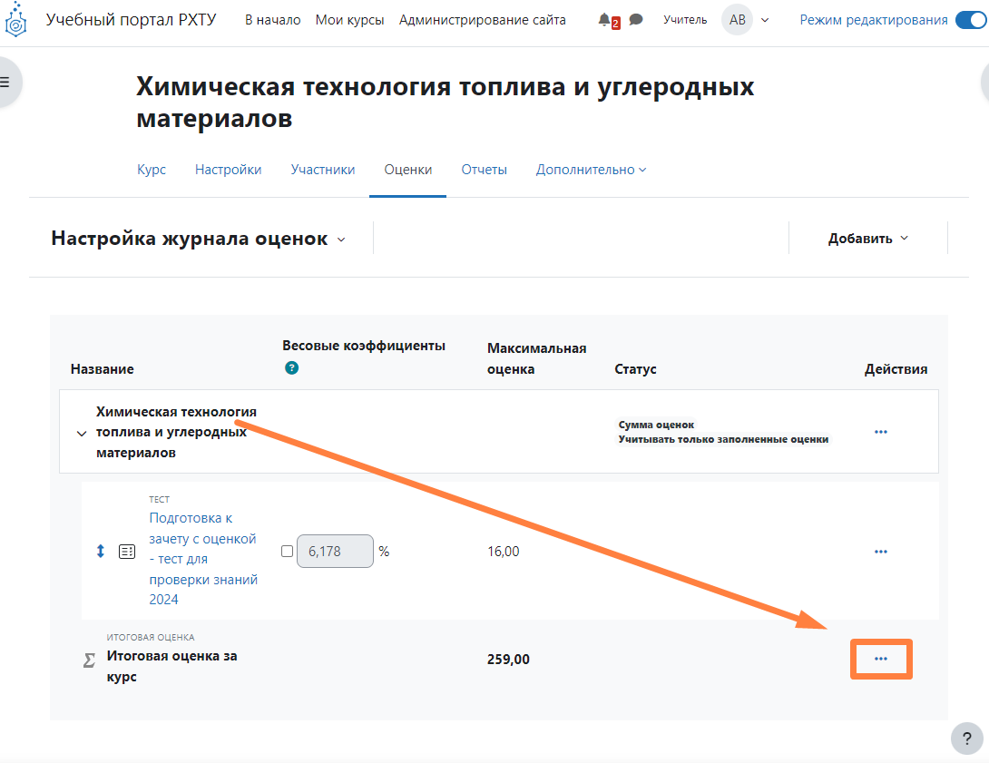 Идентификационный номер можно установить в самом Журнале оценок, но изменить его значение можно только на странице редактирования (настройке) элемента. Впишите нужную формулу в поле «Вычисление» Функции расчетаКаждый расчет оценки должен начинаться со знака равенства (=), за которым следует выражение с использованием операторов и функций, поддерживаемых системой.
