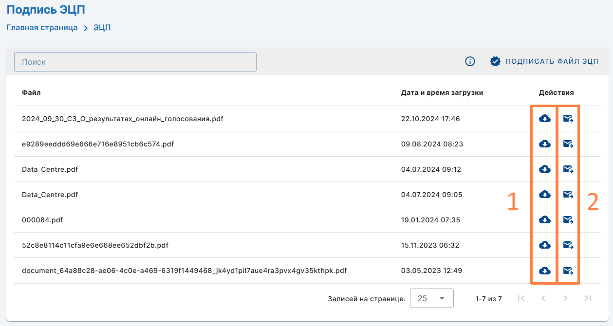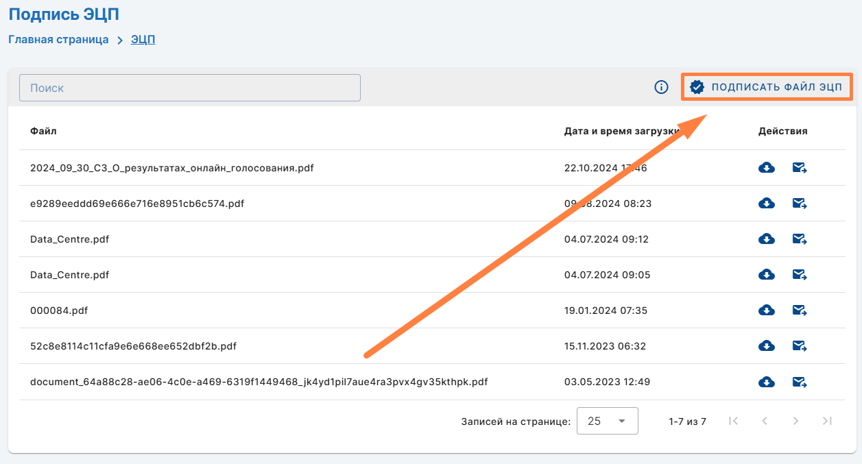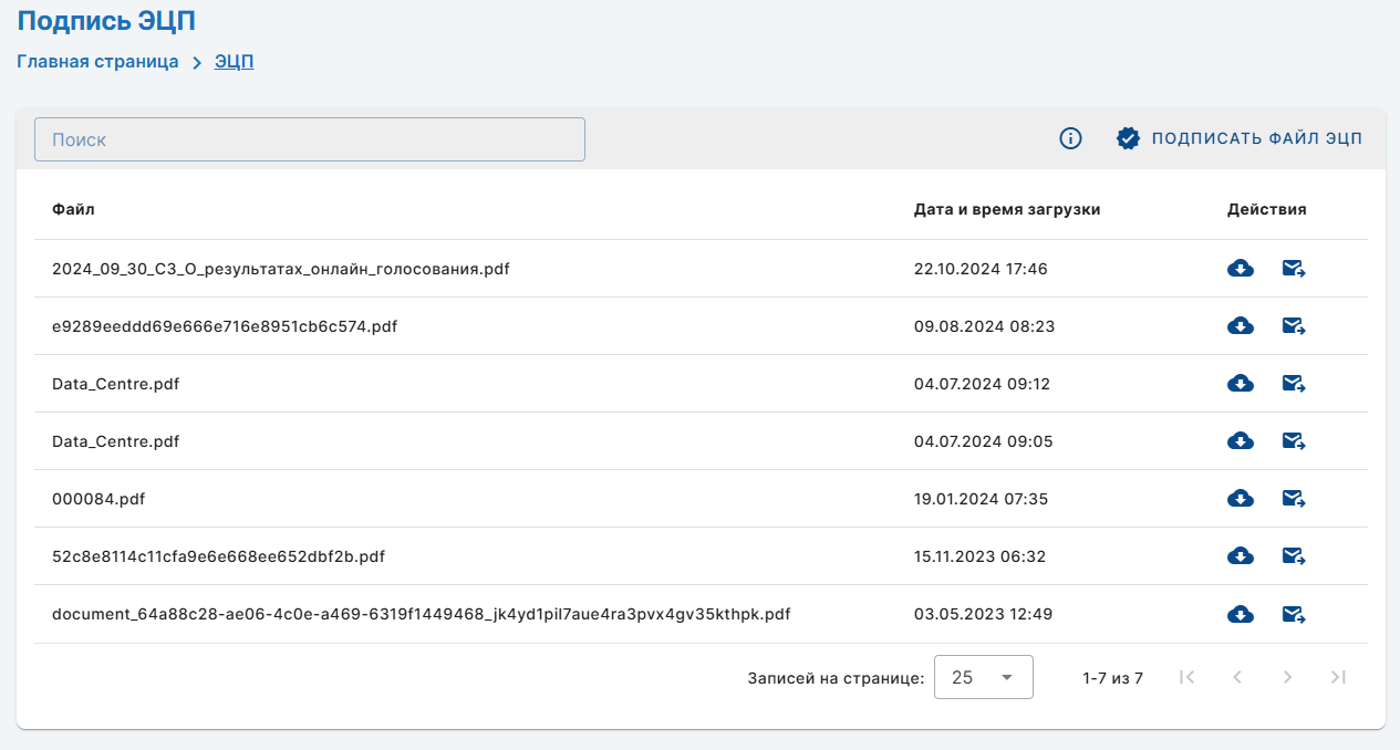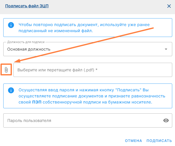 Подписание файлаДля подписания файла нажмите кнопку «Подписать файл ЭЦП»